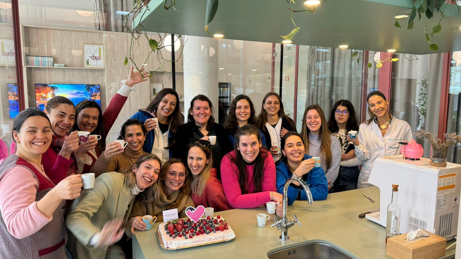 E o que trazia a Carla nas suas caixas? Não só uns bites deliciosos que oferecemos durante todo o dia às nossas clientes e que, enviamos, com carinho, para a equipa da Clínica, em Campo de Besteiros, e da –Residência São Domingos d’Algeraz. Mas também, um maravilhoso bolo Red Velvet para a equipa da Clínica em Viseu saborear, acompanhado de um brinde de ginj…cof…café!