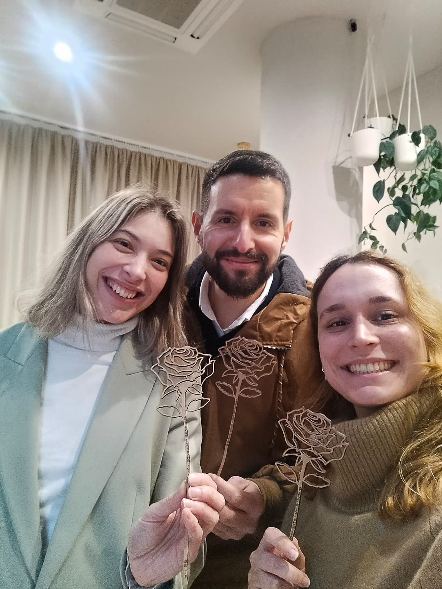 De manhã cedo, o Dr. António Pinto, de Osteopatia, ofereceu uma rosa de madeira a todas as mulheres da clínica de Viseu. Um gesto carinhoso que nos deixou, a todas, com um sorriso de orelha a orelha.